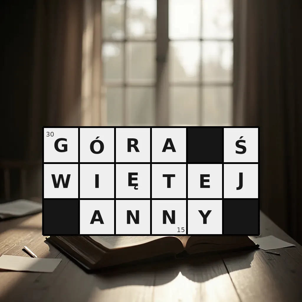 Słowo „góra świętej anny” ma 15 znaków (bez spacji i łączników).