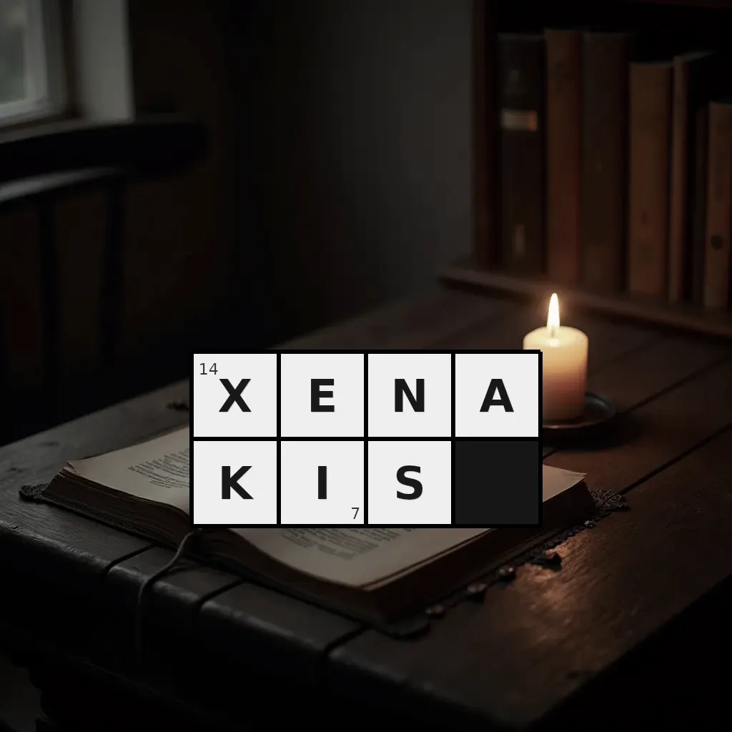 Słowo „xenakis” ma 7 znaków (bez spacji i łączników).