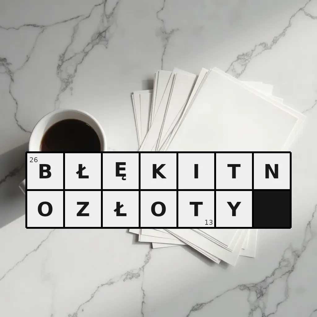 Słowo „błękitnozłoty” ma 13 znaków (bez spacji i łączników).