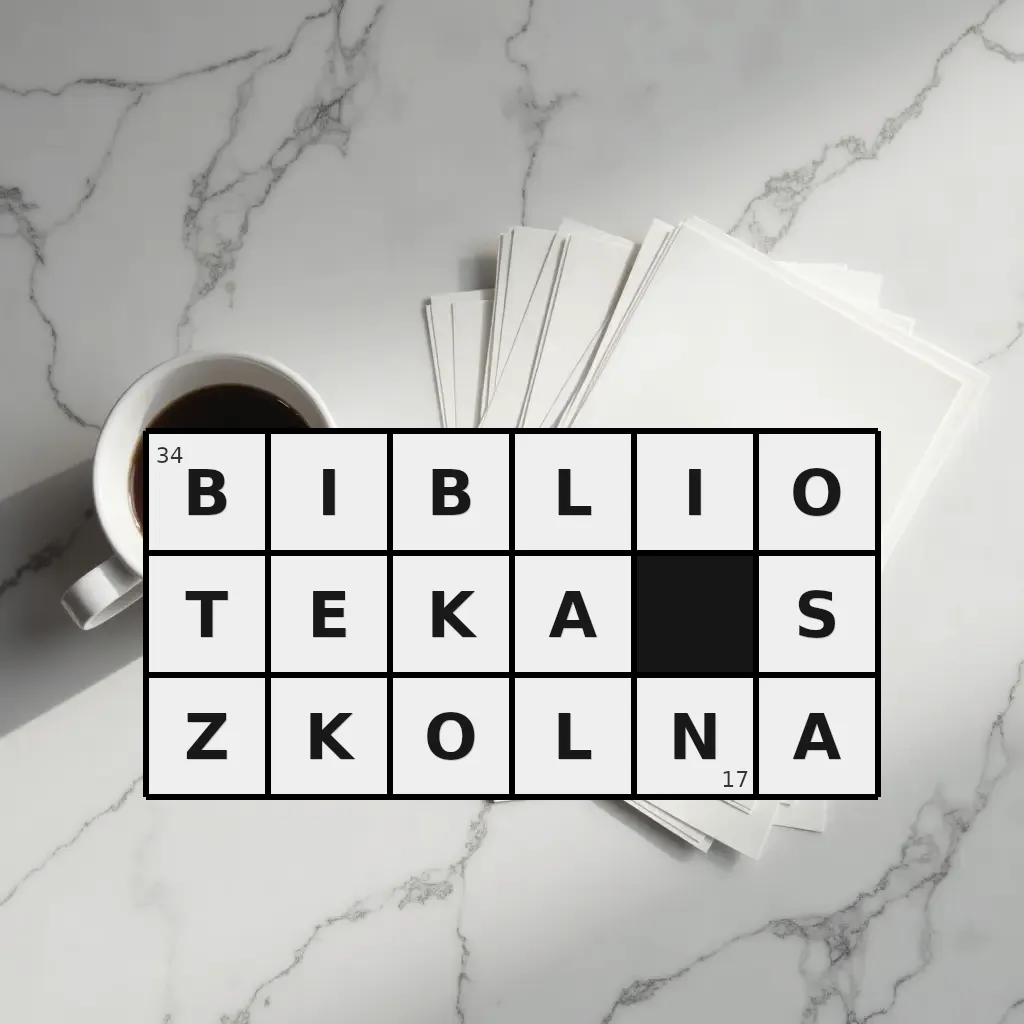 Słowo „biblioteka szkolna” ma 17 znaków (bez spacji i łączników).