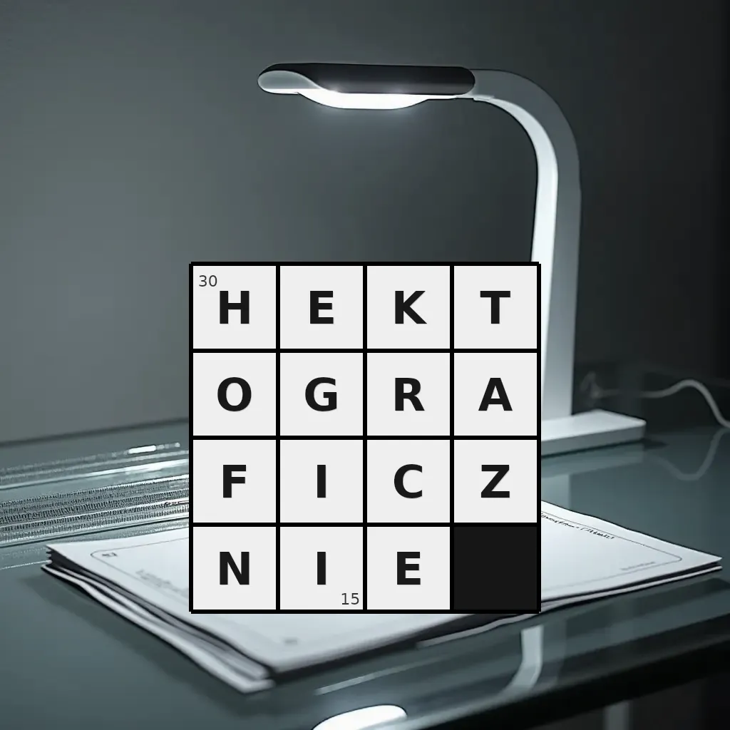 Jaka jest najtrafniejsza odpowiedź na hasło „z użyciem hektografu”?
