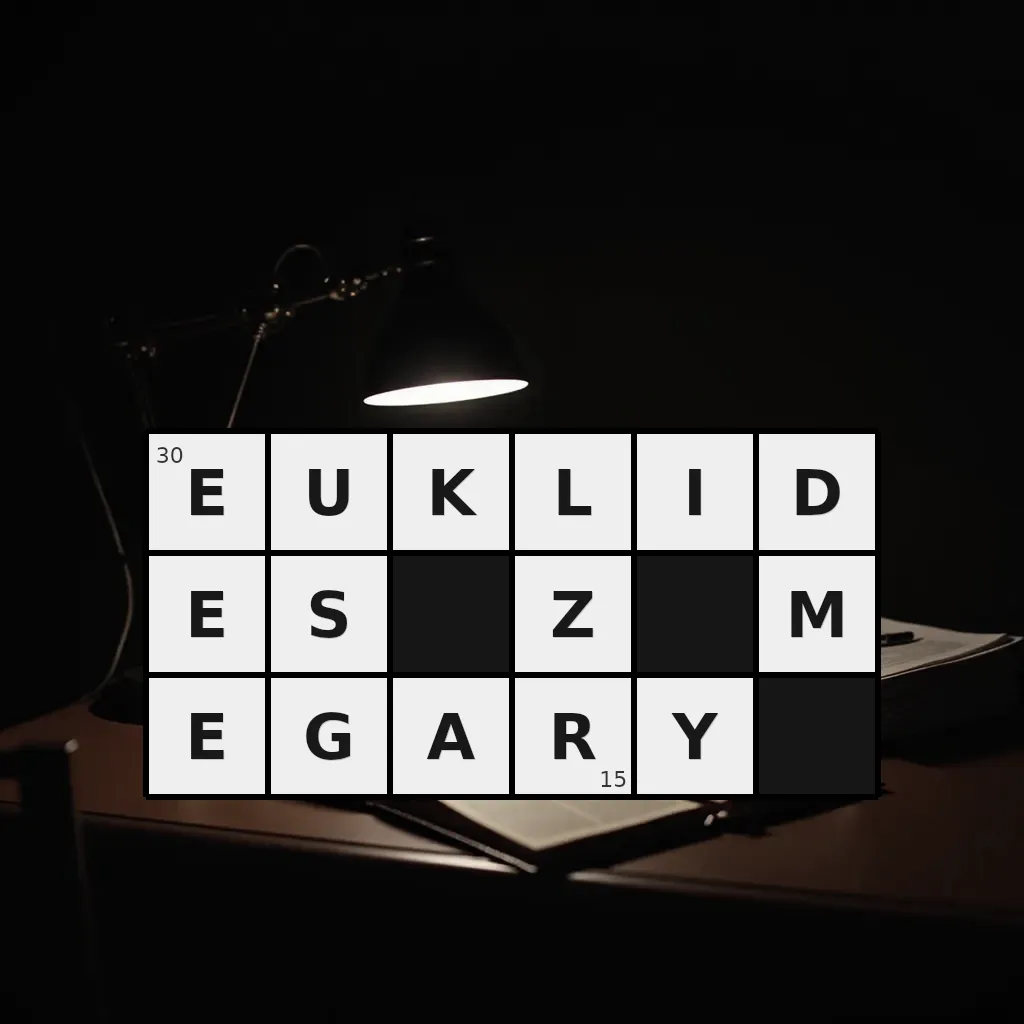 Słowo „euklides z megary” ma 15 znaków (bez spacji i łączników).