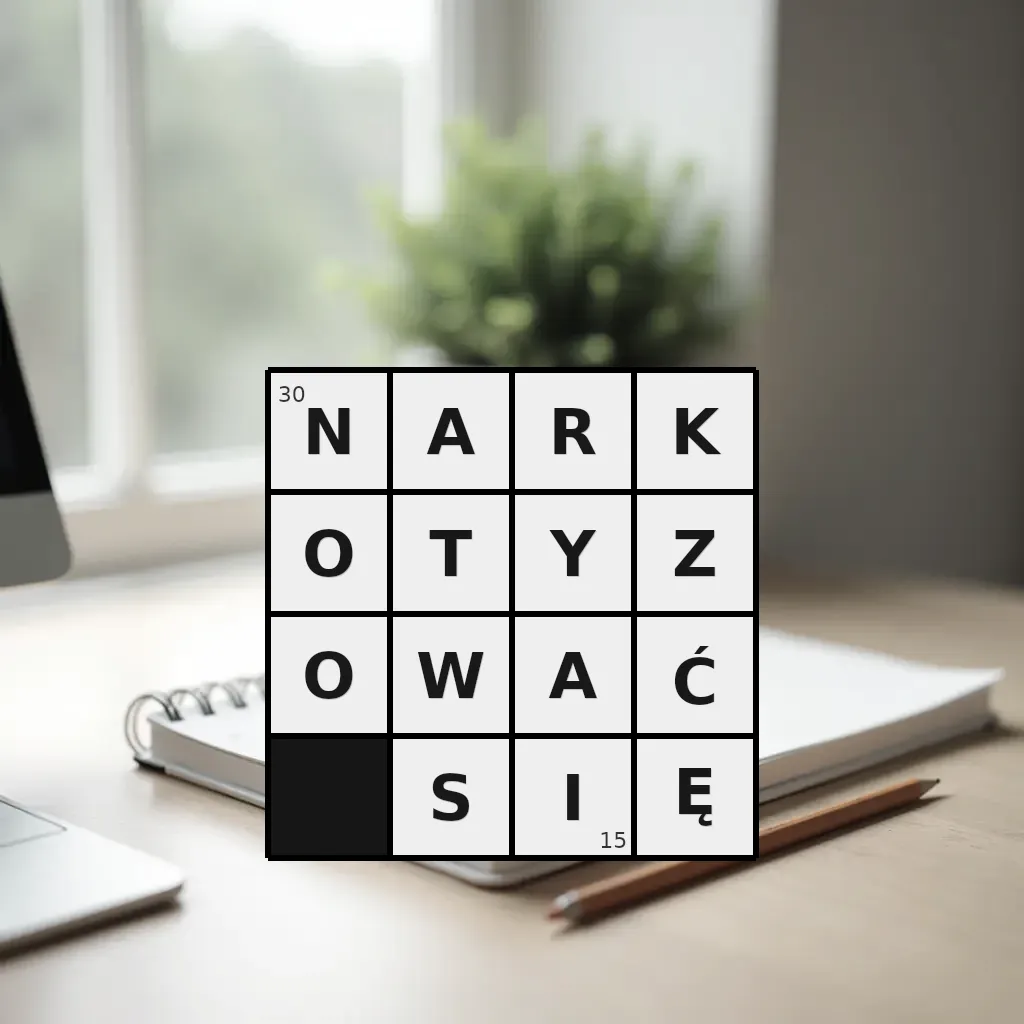 Słowo „narkotyzować się” ma 15 znaków (bez spacji i łączników).