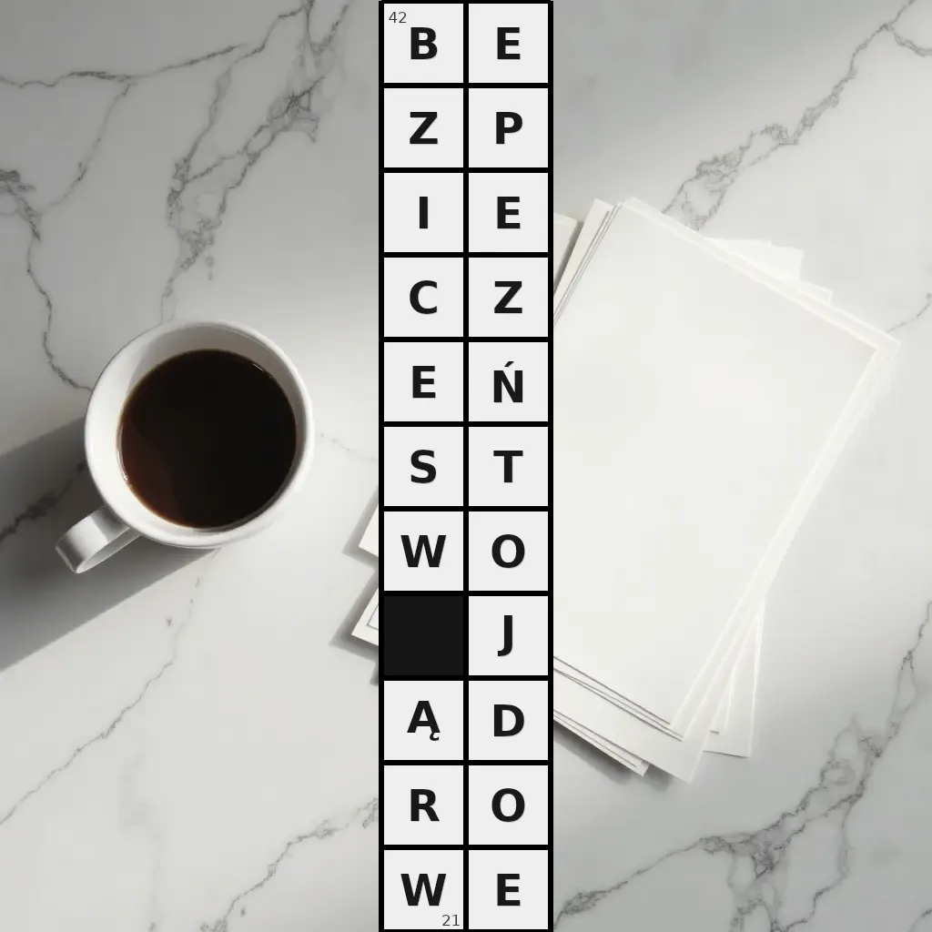 Zawiera litery: B, C, D, E, E, E, E, I, J, O, O, P, R, S, T, W, W, Z, Z, Ą, Ń