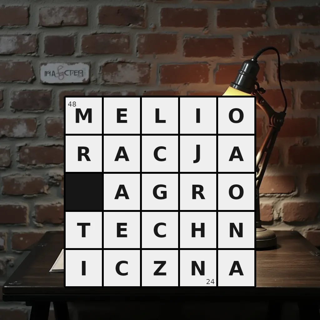 Słowo „melioracja agrotechniczna” ma 24 znaki (bez spacji i łączników).