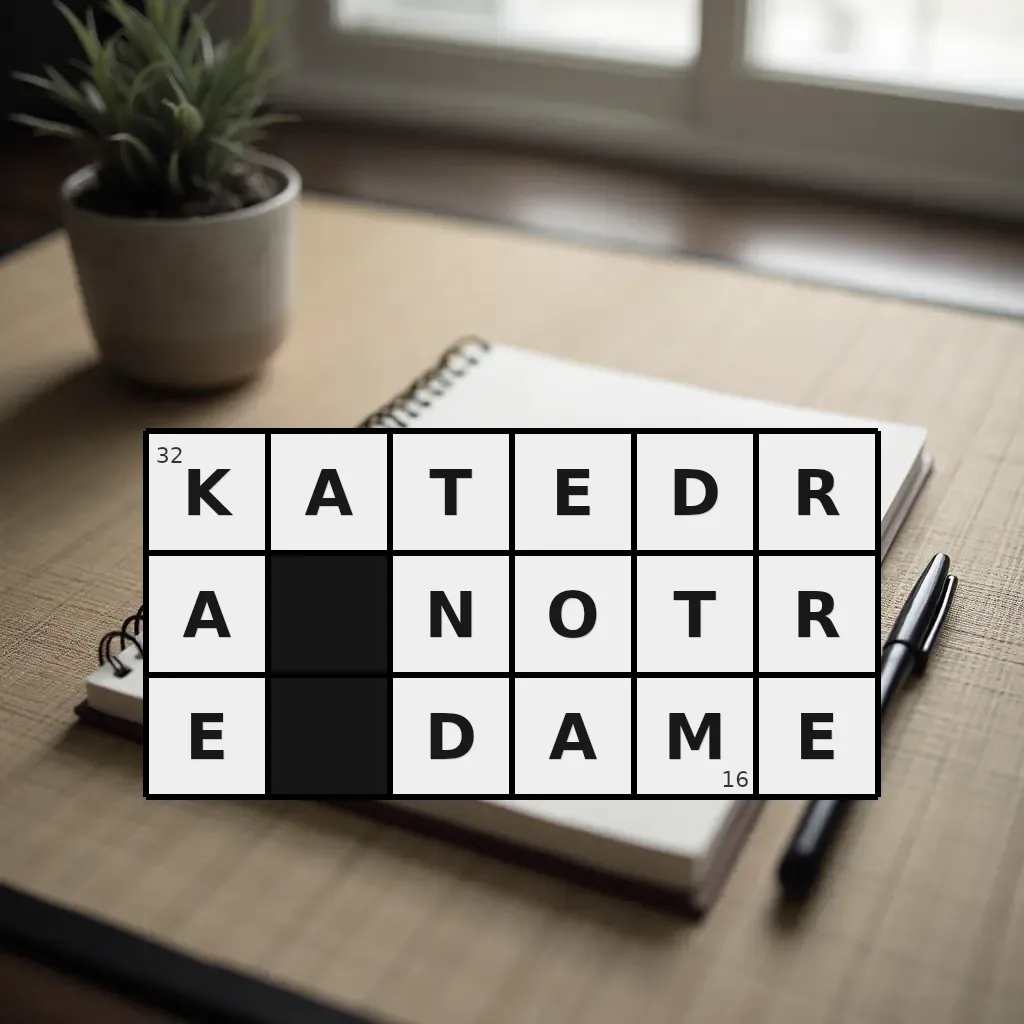 Słowo „katedra notre dame” ma 16 znaków (bez spacji i łączników).