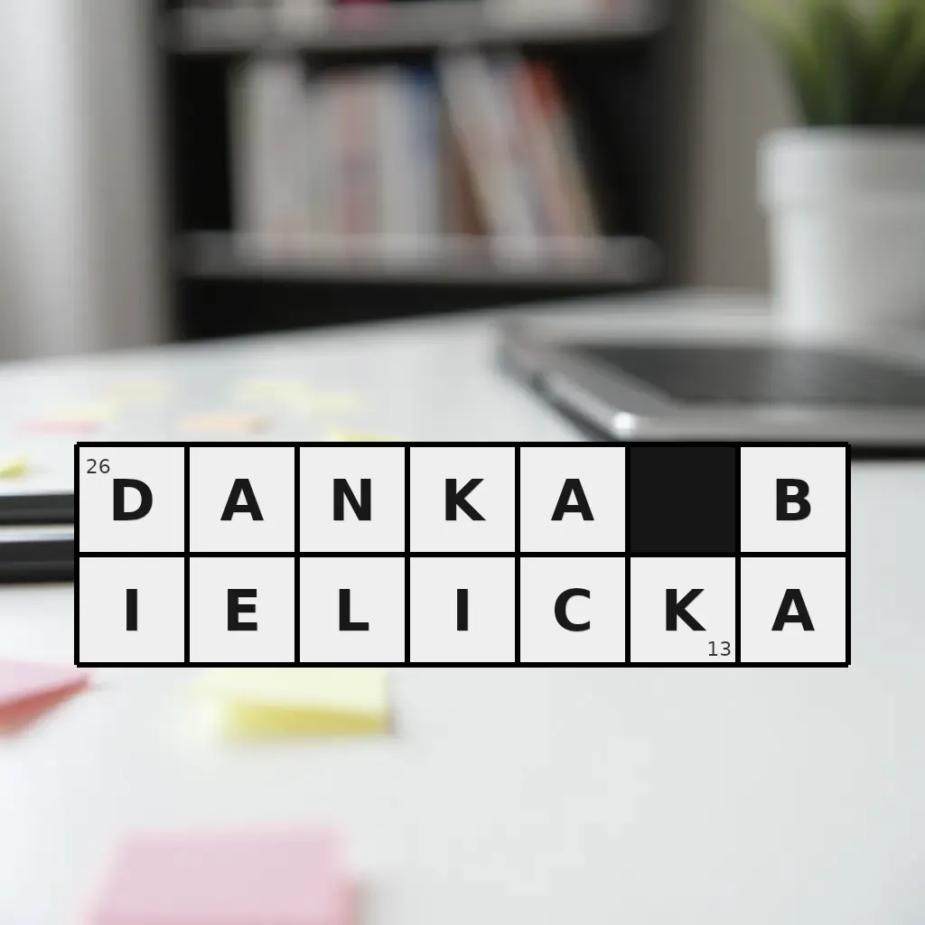 Słowo „danka bielicka” ma 13 znaków (bez spacji i łączników).