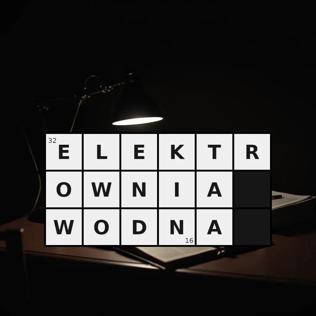 Słowo „elektrownia wodna” ma 16 znaków (bez spacji i łączników).