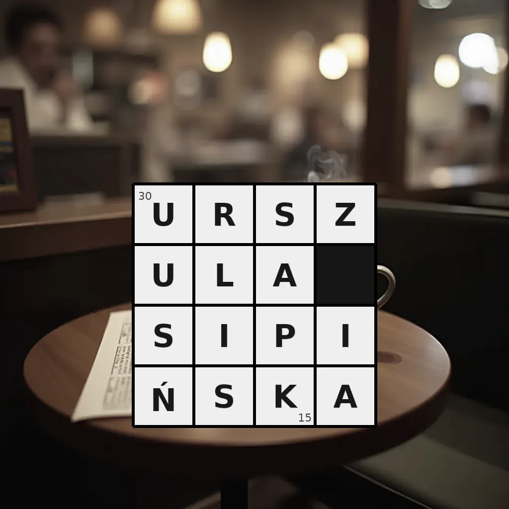 Słowo „urszula sipińska” ma 15 znaków (bez spacji i łączników).