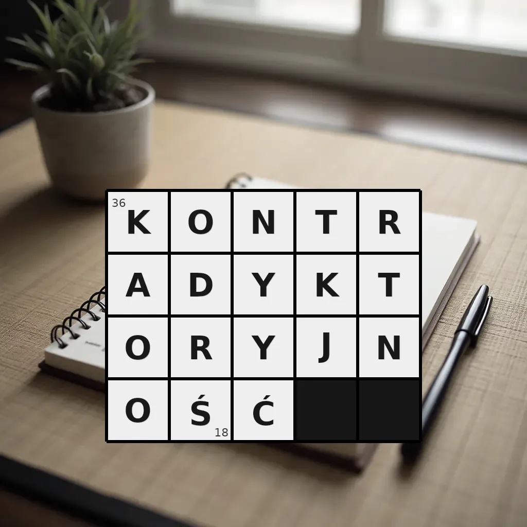 Słowo „kontradyktoryjność” ma 18 znaków (bez spacji i łączników).