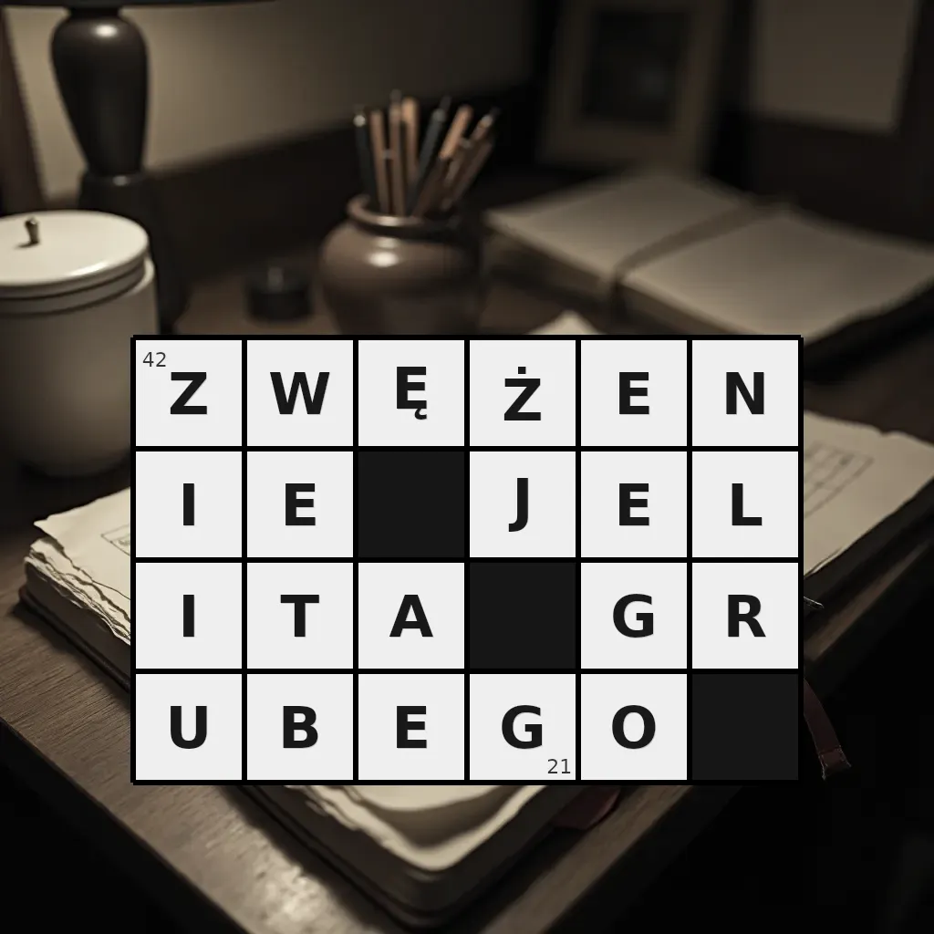 Zawiera litery: A, B, E, E, E, E, G, G, I, I, J, L, N, O, R, T, U, W, Z, Ę, Ż