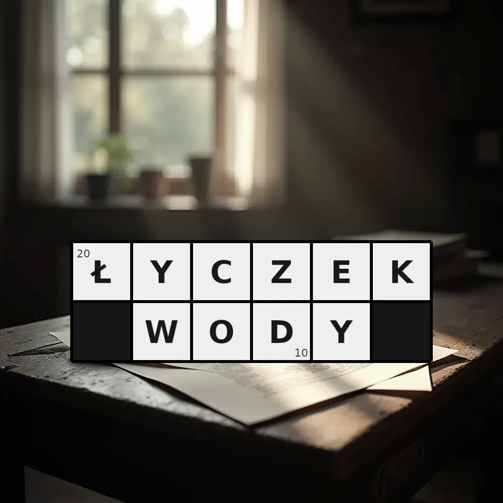 Słowo „łyczek wody” ma 10 znaków (bez spacji i łączników).