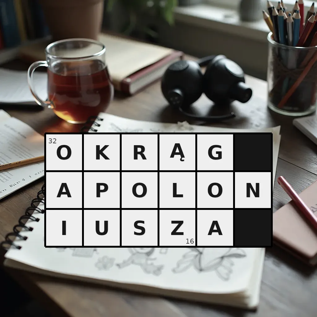 Słowo „okrąg apoloniusza” ma 16 znaków (bez spacji i łączników).