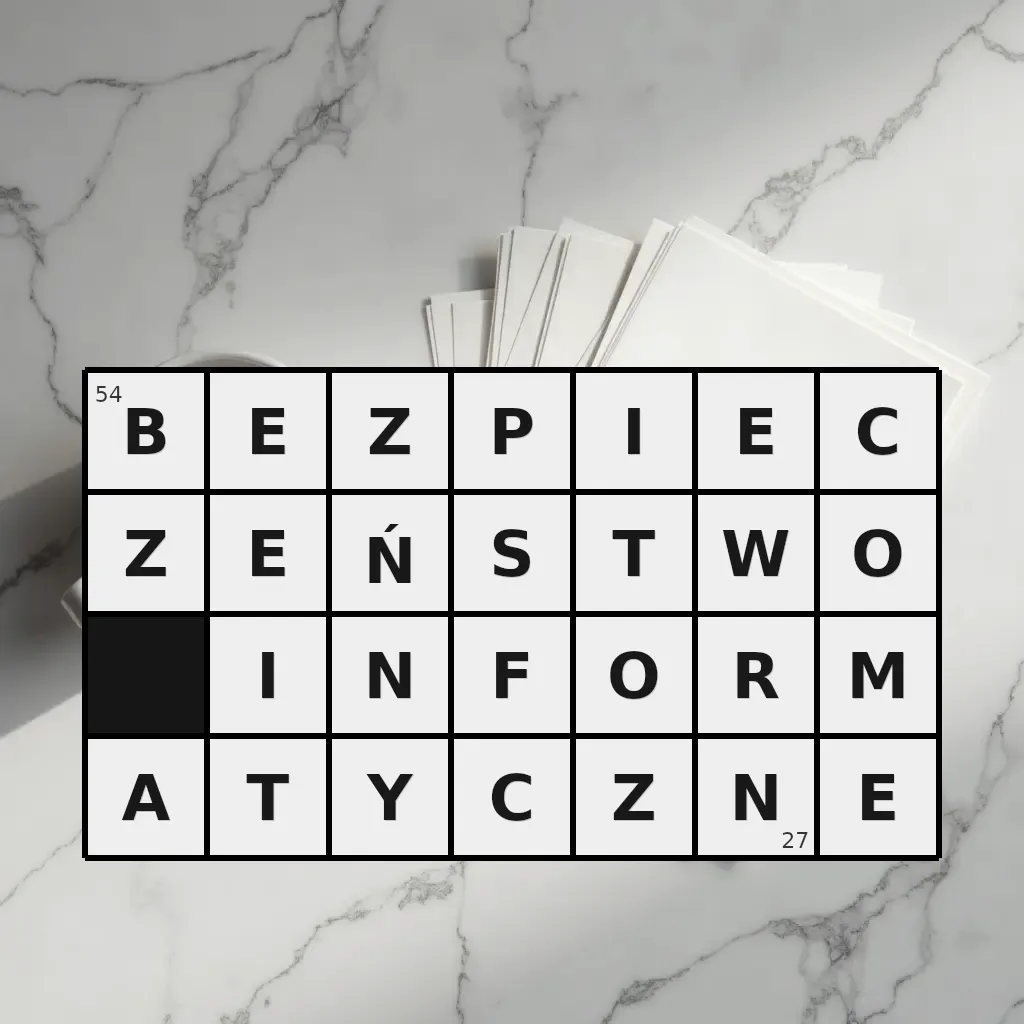 Słowo „bezpieczeństwo informatyczne” ma 27 znaków (bez spacji i łączników).