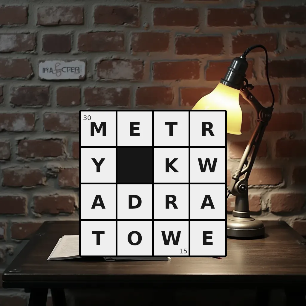 Słowo „metry kwadratowe” ma 15 znaków (bez spacji i łączników).