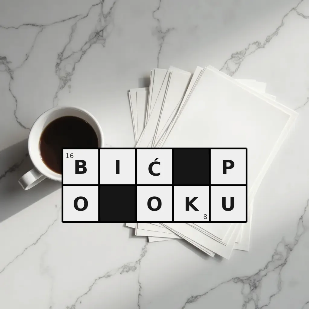 Słowo „bić po oku” ma 8 znaków (bez spacji i łączników).