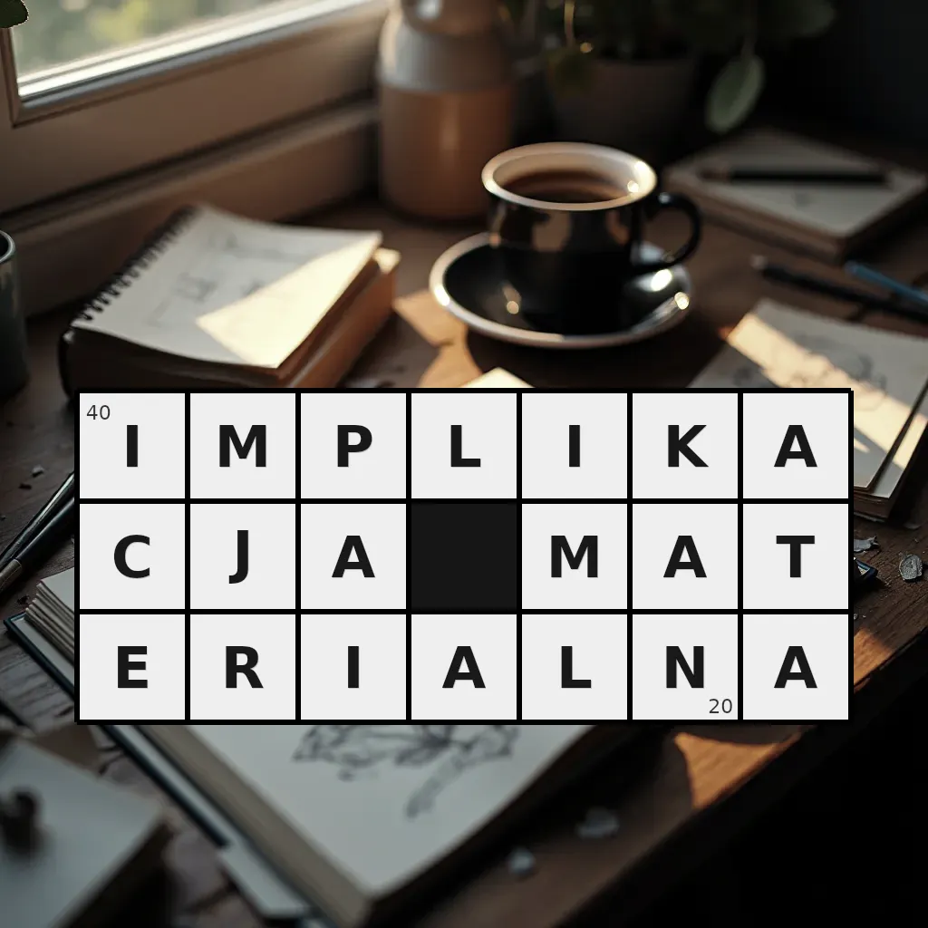 Słowo „implikacja materialna” ma 20 znaków (bez spacji i łączników).
