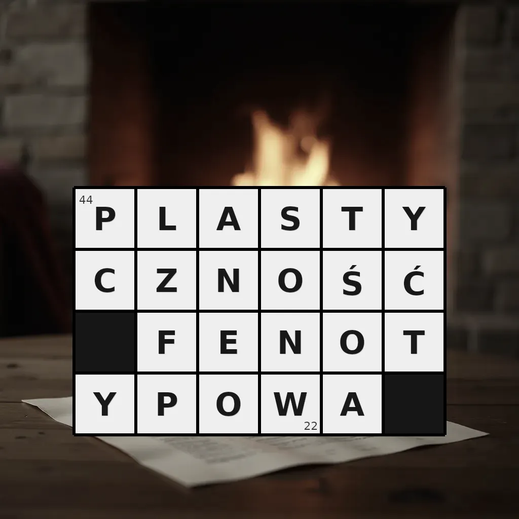 Słowo „plastyczność fenotypowa” ma 22 znaki (bez spacji i łączników).