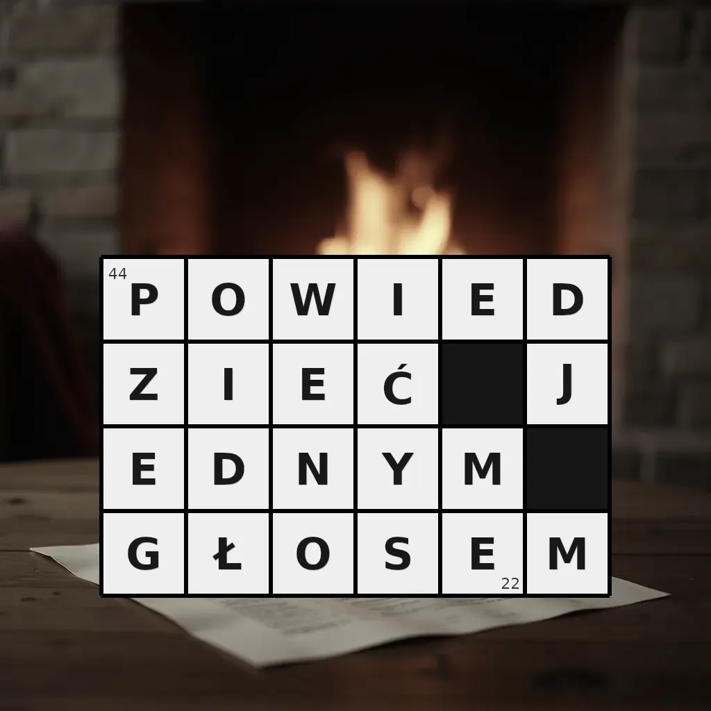 Słowo „powiedzieć jednym głosem” ma 22 znaki (bez spacji i łączników).