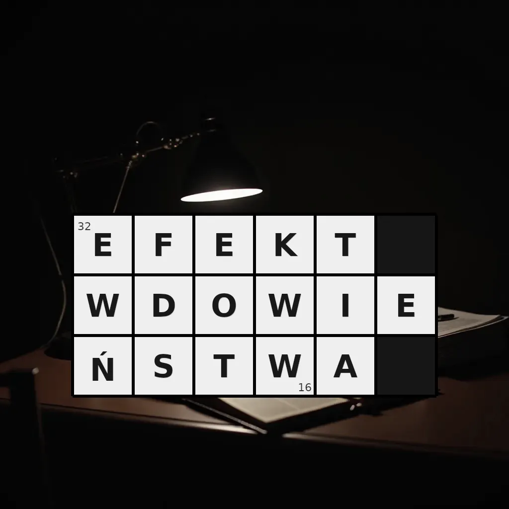 Słowo „efekt wdowieństwa” ma 16 znaków (bez spacji i łączników).