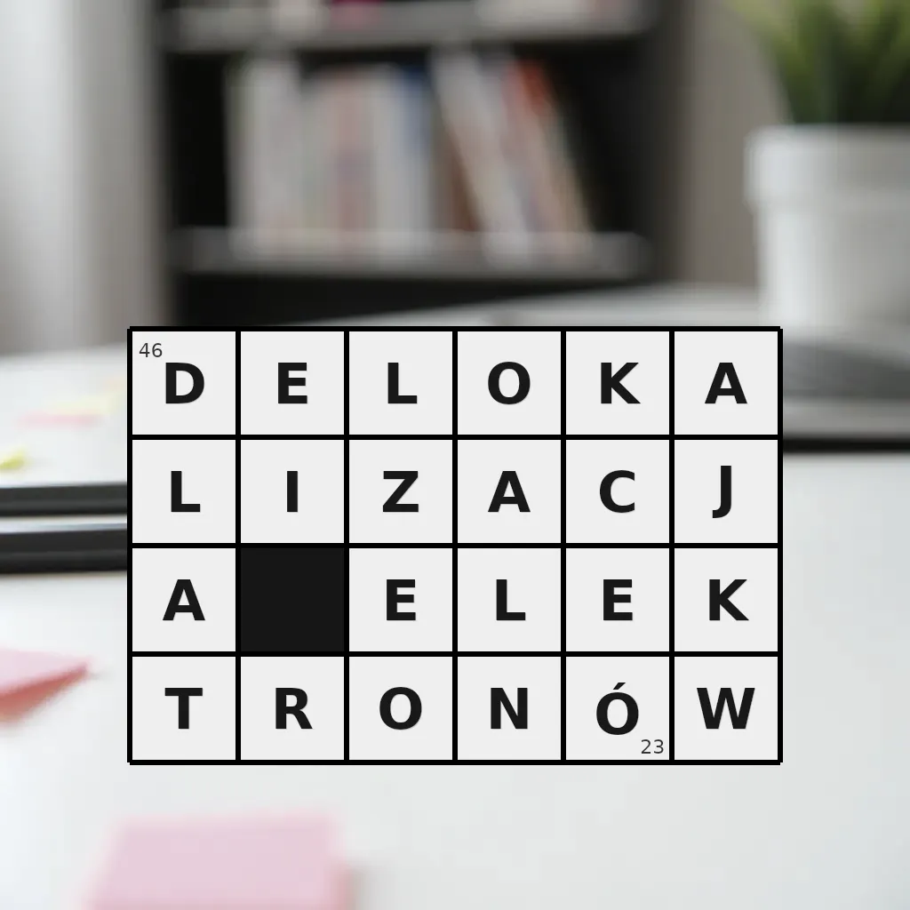 Słowo „delokalizacja elektronów” ma 23 znaki (bez spacji i łączników).