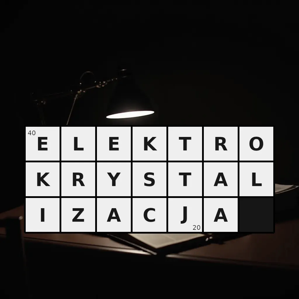 Słowo „elektrokrystalizacja” ma 20 znaków (bez spacji i łączników).