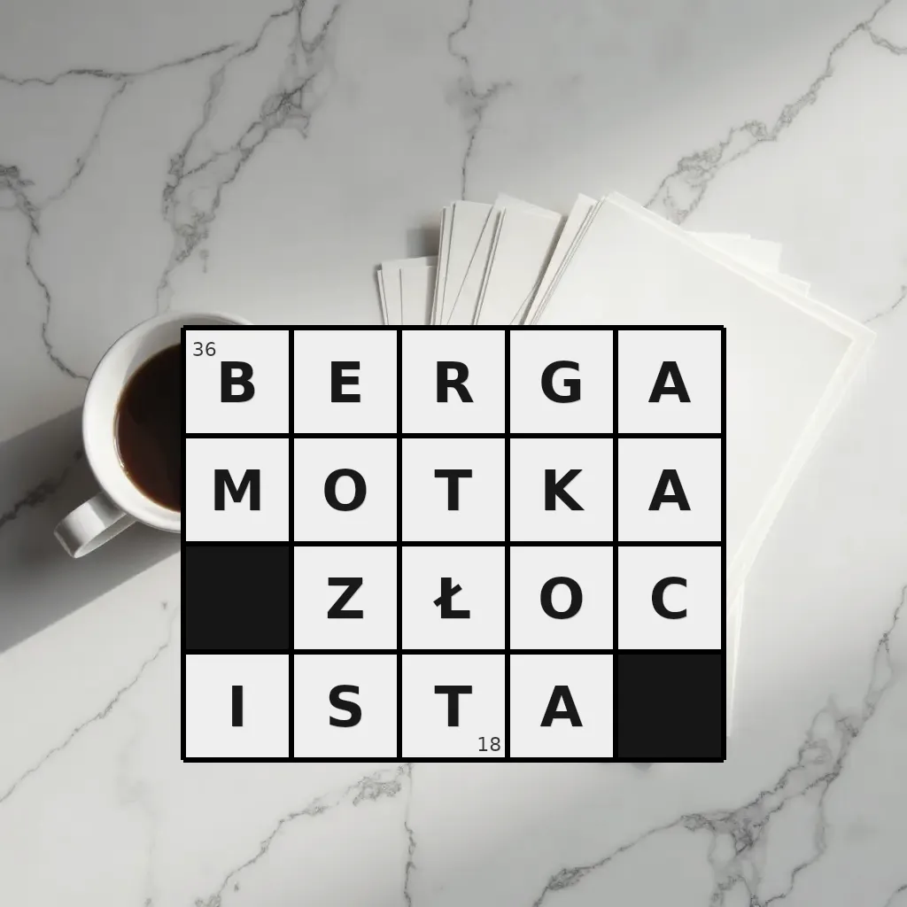 Słowo „bergamotka złocista” ma 18 znaków (bez spacji i łączników).