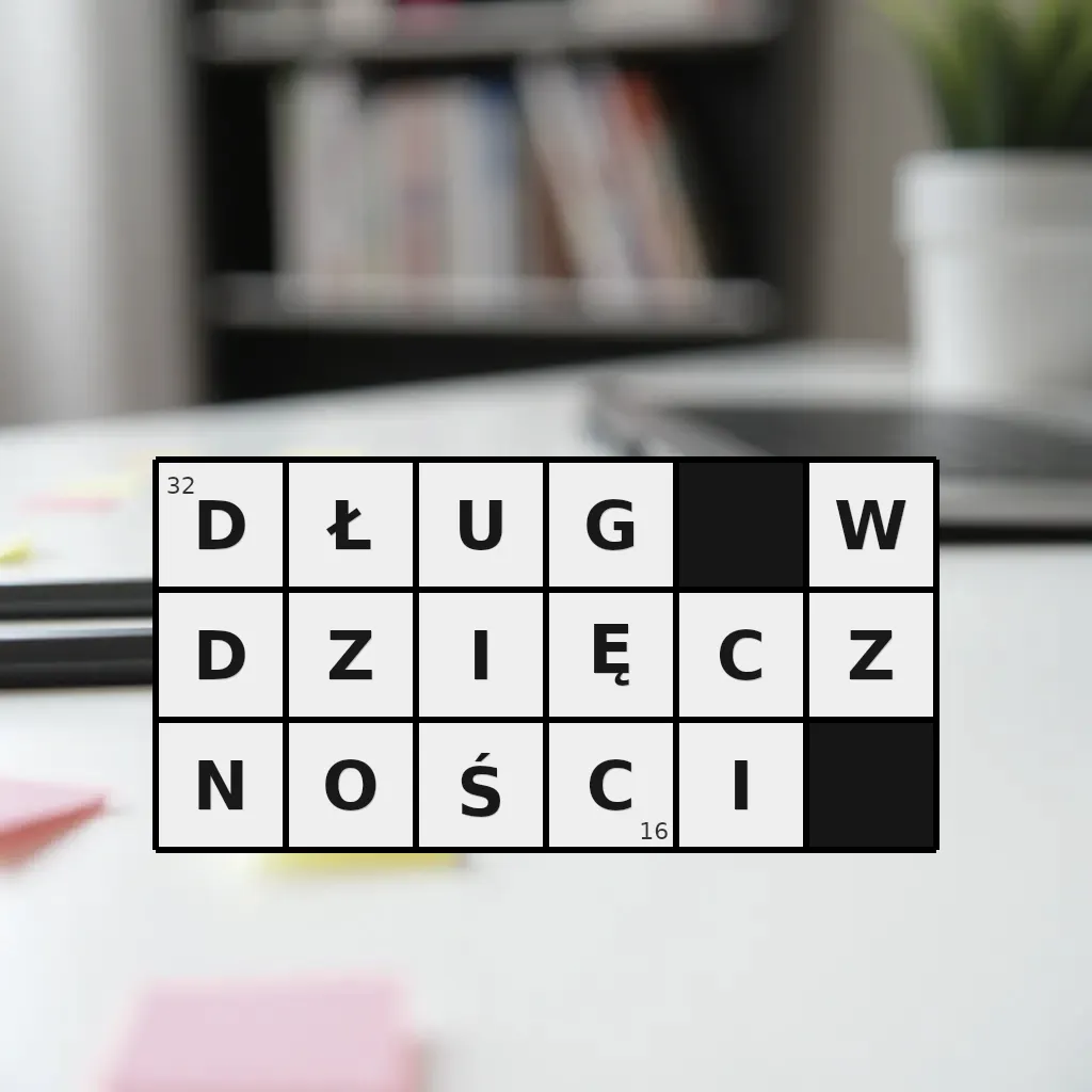Słowo „dług wdzięczności” ma 16 znaków (bez spacji i łączników).