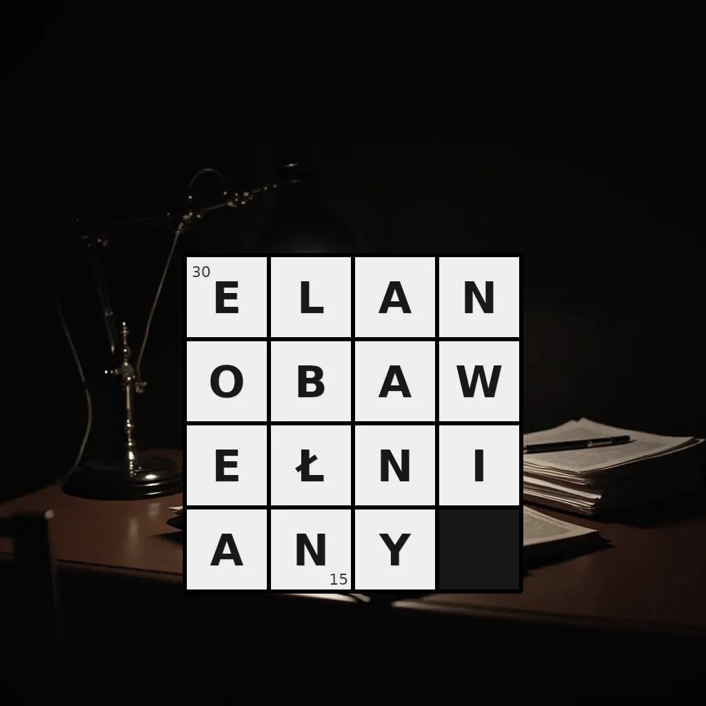 Zawiera litery: A, A, A, B, E, E, I, L, N, N, N, O, W, Y, Ł