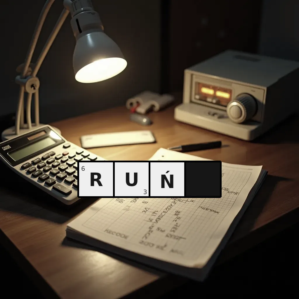 Słowo „ruń” ma 3 znaki (bez spacji i łączników).