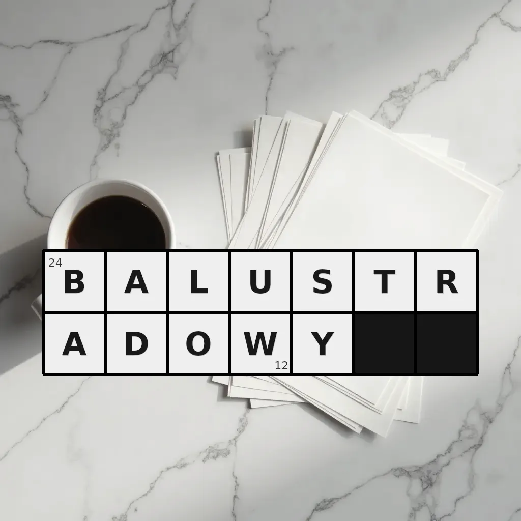 Najlepszym dopasowaniem jest balustradowy — Zobacz możliwe odpowiedzi dla hasła związany z balustradą..