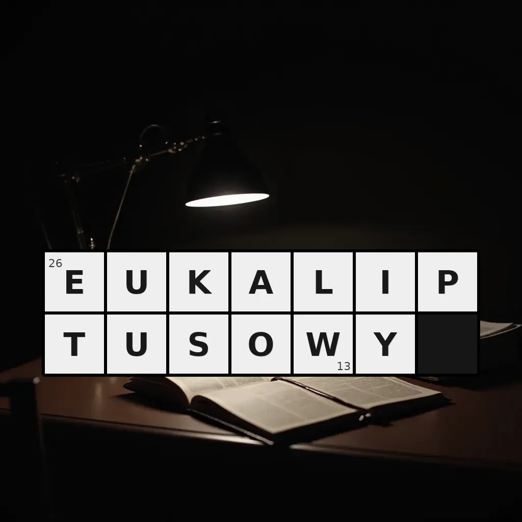 Słowo „eukaliptusowy” ma 13 znaków (bez spacji i łączników).