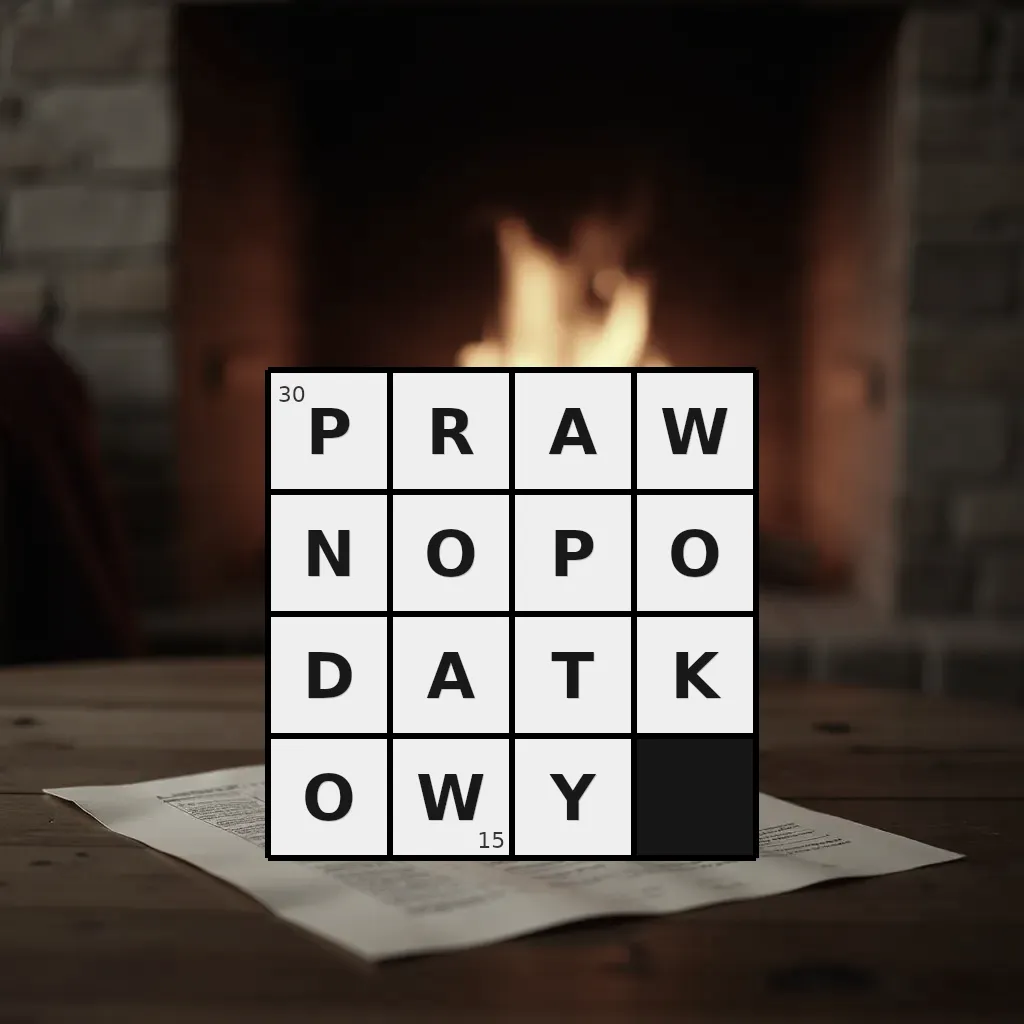 Zawiera litery: A, A, D, K, N, O, O, O, P, P, R, T, W, W, Y