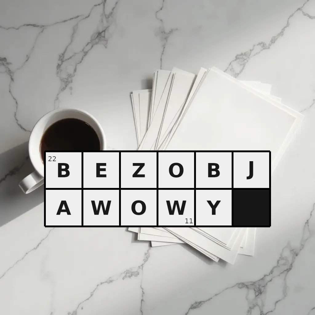 Zawiera litery: A, B, B, E, J, O, O, W, W, Y, Z