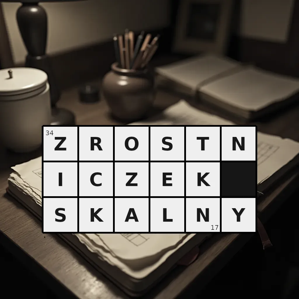 Słowo „zrostniczek skalny” ma 17 znaków (bez spacji i łączników).